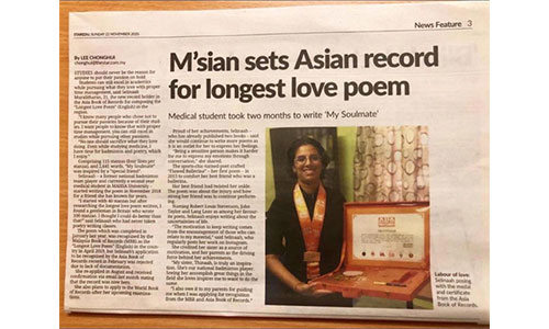 The Outstanding Student Leadership Award was conferred upon Kenneth Wong Chen Fei. The Chancellor commended Wong for his outstanding achievements in his MBBS studies as well as making a significant difference to the community. Wong held many student leadership positions and started a charitable society called MAHSA Helping Hands, leading more than 20 charitable projects in soup kitchens, orphanages, old folk homes, distributing food and give medical services to the homelessand helping the Rohingya refugee children in Malaysia.