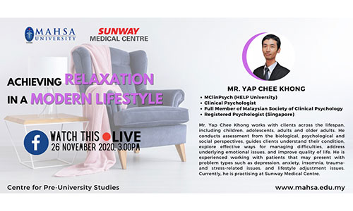 Students who are interested to learn more about the programmes and scholarships available, are advised to contact Ms. Rachel Fum at pso@MAHSA.edu.my