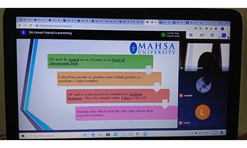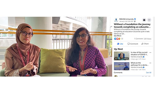 On 25 March 2021, an official meeting between MAHSA University and the Public Service Department (JPA) was held in the Unity building from 2:00 p.m. until 4:00 p.m. This meeting was held to honour FIS students from the July 2020 intake for receiving JPA sponsorships for their degree courses at MAHSA University. Most of the students are going to pursue the Bachelor of Medicine and the Bachelor of Surgery (MBBS) as well as the Bachelor of Dental Surgery at MAHSA University.