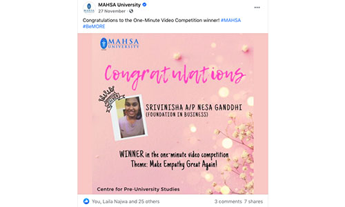 MAHSA University’s Group Senior Director, Business Development and Strategic Alliances, Mr. Santhiran Segaran A/L Ramasamy, said that it is part of MAHSA University’s philosophy of providing affordable quality education and hopes that more Malaysian Indian youths will take advantage of this opportunity.