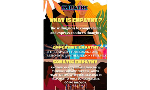 Empathy is the ability to experience and relate to the thoughts, emotions or experiences of others. Empathy is more than simple sympathy, which is being able to understand and support others with compassion or sensitivity. In the simplest sense, empathy is the ability to step into someone else’s shoes, be aware of their feelings and understand their needs.