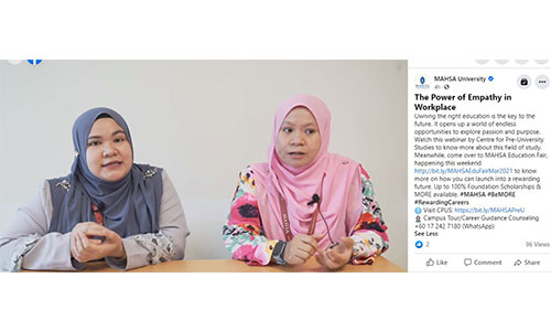 Interested applicants may call MAHSA University at 1800-88-0300 or email pso@MAHSA.edu.my