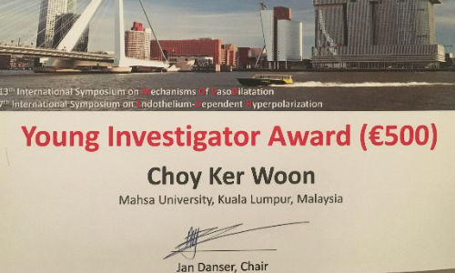 Melissa Chin Queen Kha and Ng Ying Yi, both Year-Five students in MAHSA’s Doctor of Dental Surgery Programme won the third prize in the oral presentation beating 11 other Universities.